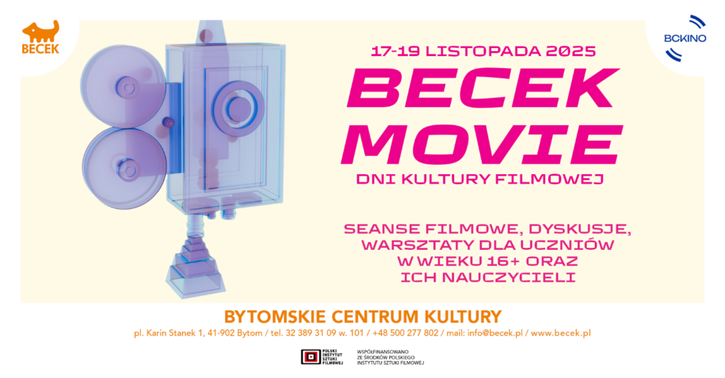 07/11/2025 Wyłączono przez adminBytomskie Centrum Kultury zaprasza na Becek Movie: Dni Kultury Filmowej dla Młodych, które odbędą się w dniach od 17 do 19 listopada 2025 roku.