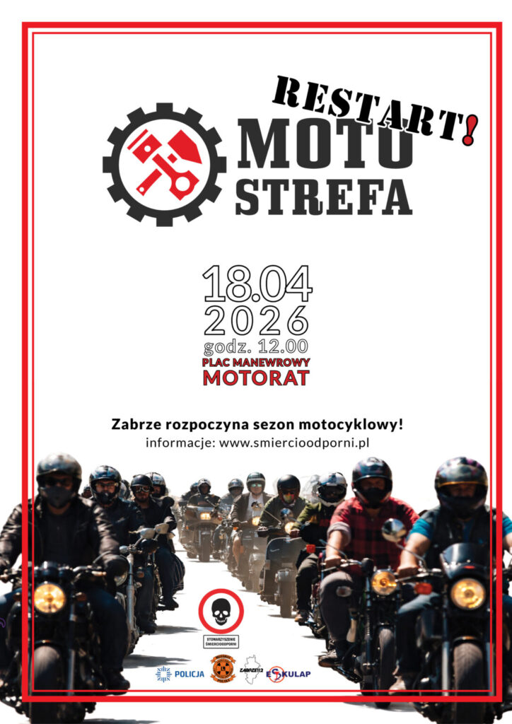 Z ogromną przyjemnością zapraszamy Was na MotoStrefę: restart!, czyli motocyklowe rozpoczęcie sezonu 2026 w Zabrzu! Prócz integracji środowiska, planujemy widowiskową paradę ulicami Zabrza, a także MotoOlimpiadę dla wszystkich zainteresowanych!