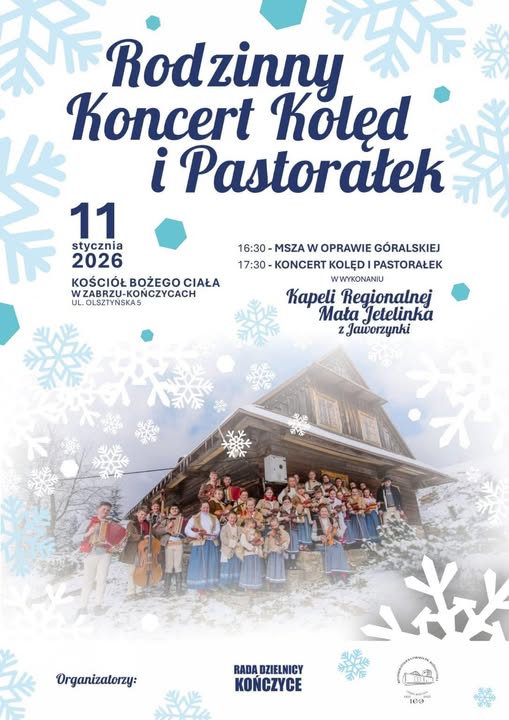Rada Dzielnicy Kończyce zaprasza na Rodzinny Koncert Kolęd i Pastorałek.