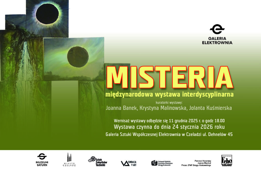 07/12/2025 Wyłączono przez adminW czwartek 11 grudnia br. o godz. 18.00 zapraszamy na wernisaż międzynarodowej wystawy zbiorowej zatytułowanej „Misteria”. Stanowi ona kolejną odsłonę projektu Eco Art organizowanego przez Fundację V ART współpracującą z Zarządem Związku Polskich Artystów Plastyków Okręgu Krakowskiego. Koncepcja tego artystycznego zamierzenia związana jest z – szeroko rozumianym – zrównoważonym rozwojem społeczeństwa. „W dobie dzisiejszego niszczenia środowiska, globalnej degradacji przyrody, działań naruszających dobro oraz ludzką godność pragniemy zachować to, bez czego każde społeczeństwo skazane jest na utratę nadziei na pomyślne jutro: DOBRO, PRAWDĘ, PIĘKNO – grecki kanon etyczny, który towarzyszy nam od wieków.” – wyjaśniają jego pomysłodawczynie, a zarazem kuratorki wystawy: Joanna Banek, Krystyna Malinowska i Jolanta Kuśmierska.