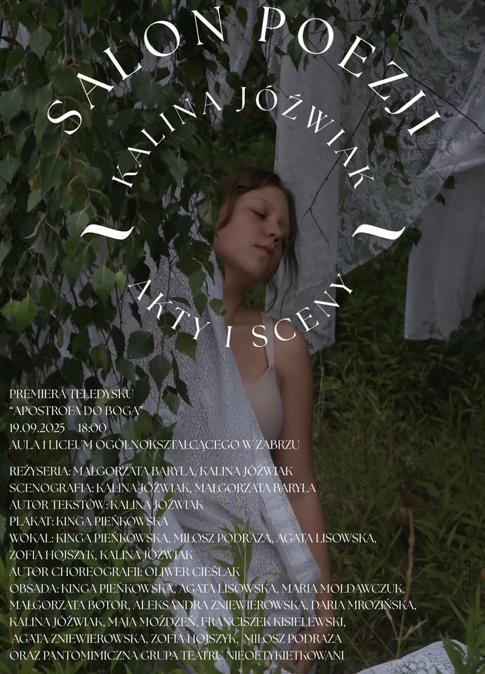 Zaprezentujemy wiersze oraz tekst piosenki- nagrodzony w konkursie Fundacji Ypsilon Art !! Przedstawimy również zrealizowany przez grupę teatralną teledysk „Apostrofa do Boga”.